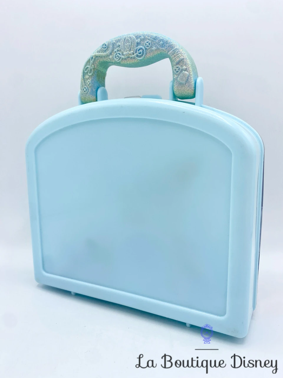 Ensemble de jeu avec mini poupée en plastique représentant la princesse Cendrillon. Coffret de 9 pièces inspirées du film : petite poupée, chien Pataud en feutrine à tête branlante, souris Gus Gus et Jaq Jaq avec détails scintillants, cuve à laver, brosse à récurer, brosse à cheveux et deux bouteilles de shampoing pour animaux de compagnie. Cendrillon a une chevelure blonde, elle porte sa robe bleue ciel et des chaussures assorties. Sa tête, ses bras et ses jambes sont articulés. La petite valise transparente et bleue a une poignée de transport à paillettes pour pouvoir emmener votre nouvelle poupée partout avec vous !