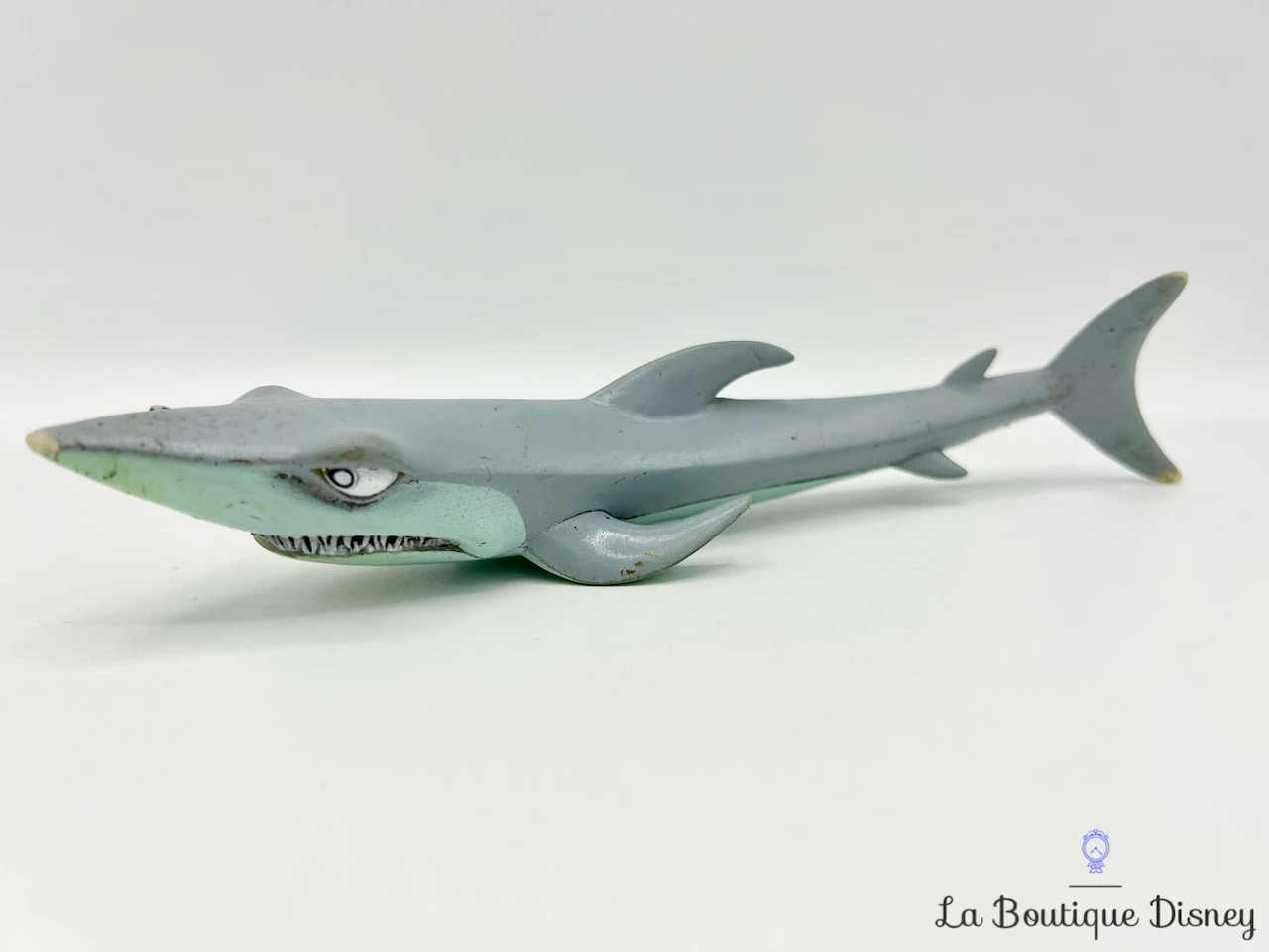 Figurines des requins du dessin animé Le Monde de Némo. Il y a Bruce, le grand requin banc et ses deux acolytes Chumy, le requin pèlerin et L’Enclume, le requin marteau. Ils sont tous les trois de grands prédateurs, mais lors d’une réunion ils font le serment de ne plus jamais manger de poisson !