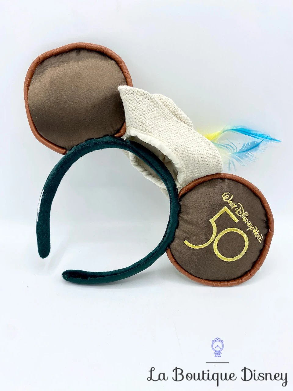 Devenez une véritable star avec ce serre tête de Mickey Mouse et Tiki Room. Collection rendant hommage aux attractions cultes du parc Disneyland et de Walt Disney World dans le cadre des 50 ans du parc « The World’s Most Magical Celebration ». Cette cinquième pièce de la série (5/12) est sur le thème de l’attraction Enchanted Tiki Room. Ears vertes avec des motifs polynésiens et un chapeau au centre avec un écusson de perroquet et des plumes. Broderie « Walt Disney World 50 » au dos d’une oreille.