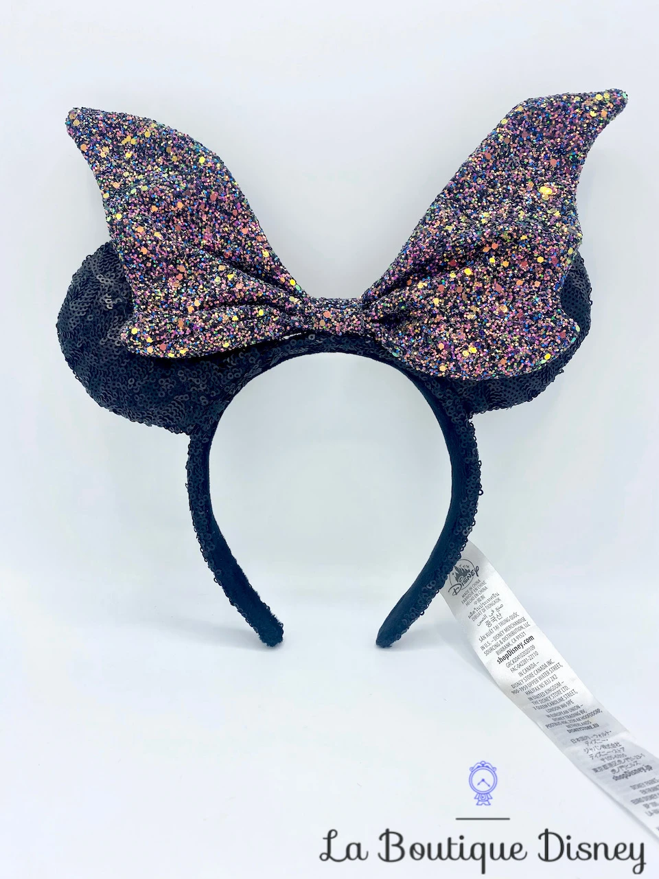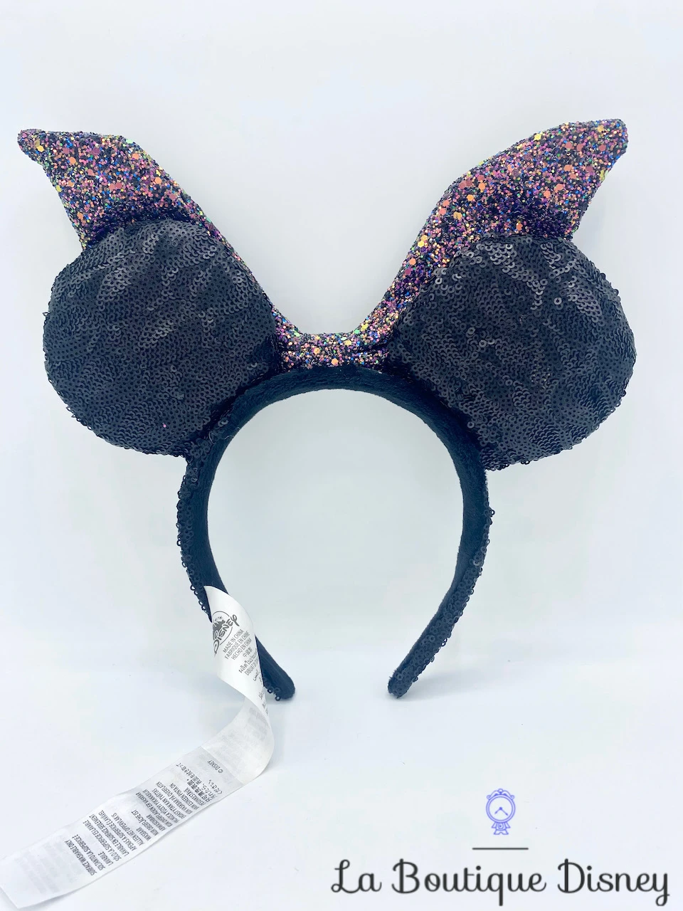 Devenez une véritable star avec ce serre tête de Minnie Mouse. Ears noires avec oreilles de Minnie recouvertes de sequins noirs. Sur le devant, il y a deux grandes cornes en forme d’ailes de chauve-souris violettes à paillettes strass. Un serre-tête digne des cornes de Maléfique !