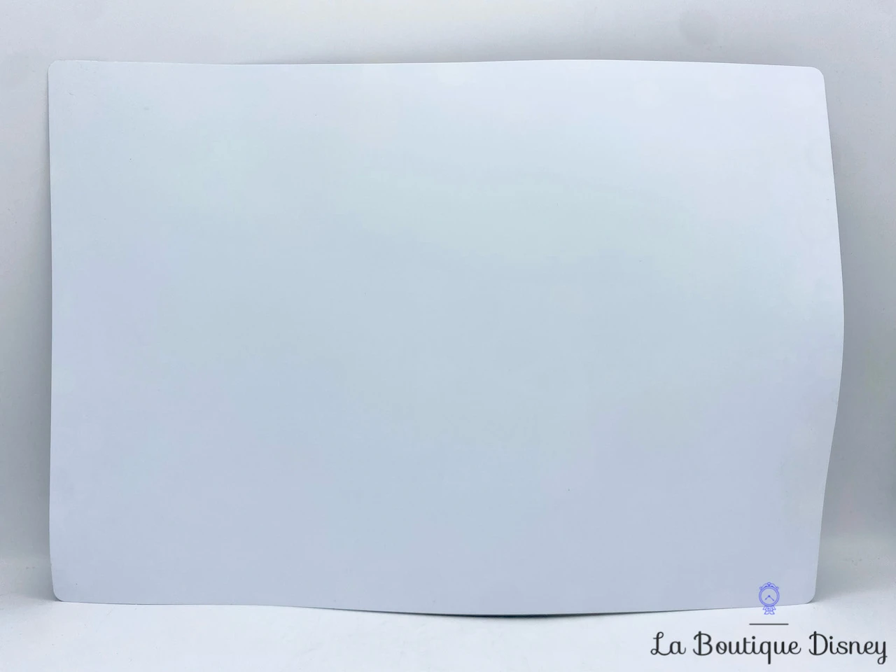 Set de table bleu en plastique représentant Winnie l’ourson sur un gros ballon rouge. Tous ses amis sont également présents comme Porcinet, Coco Lapin, Tigrou ou encore Bourriquet ! Ils sont au milieu de la forêt. Contour bleu avec des petits soleils jaunes.